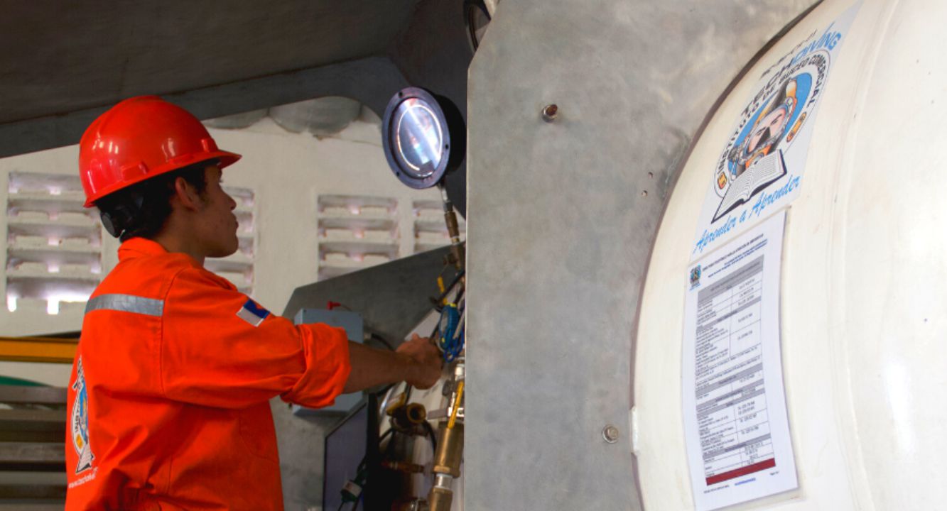 Familiarizar al alumno con el uso y manejo de todo lo que involucra el sistema que de descompresión: compresor de buceo, filtros, mangueras de interconexión, válvulas, cámara hiperbárica, comunicación, iluminación, etc.